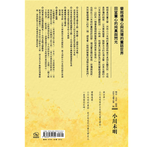 明明是兒童文學,然而小川未明的童話卻時常可見到生離死別,亦或是悲傷的結局,以及寒風徹骨、陰鬱冰冷的北海冰雪,北國出身的小川未明曾回顧說到:「小時候,我總是幻想地認為只要我攀越過這座山,山的另一頭應是個明朗無雪的明亮世界在等我。」也因此小川未明的童話或許抑鬱,描述著至親的背叛、悲傷與孤寂,然而攀越過傷心的另一頭,總有著一股明朗無雪的溫暖在等著我們!