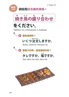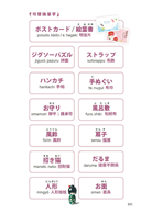 我們依照使用場合分為七大類,再細分為32個單元。以中日對照的方式列出好用句,再加上羅馬拼音輔助,幫助旅人在不同的場合中,快速地找出自己需要的一句話,還可以試著自己唸出來。在好用句中,如果有可以用其他字彙代換的單字,我們會加框變色處理,並在右頁附上其他可以替換的單字。旅人只要將自己需要的單字代入好用句中,就能即時表達自己想說的話。