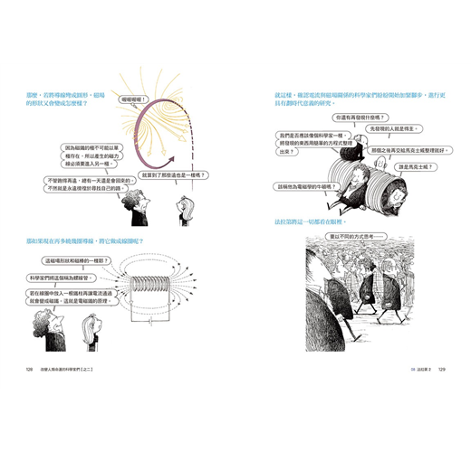 《改變人類歷史的科學家們》系列書籍,收錄了科學史上50個經典場面,以及讓這些場面得以成真的52位科學家故事。第二冊中有發現電磁關係的法拉第、完成電磁學的馬克士威、奠定量子力學基礎的湯姆森與拉瑟福、發現相對論的愛因斯坦、揭開宇宙起源秘密的彭齊亞斯與威爾遜等,替近代物理學開啟全新篇章的17位科學家。