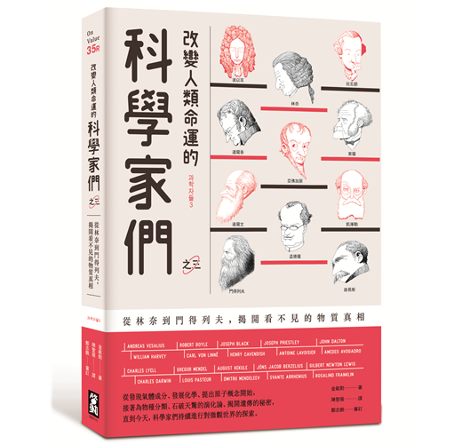 《改變人類命運的科學家們》系列書籍,收錄了科學史50個經典場面,以及讓這些場面得以成真的52位科學家的故事。來到第三冊,有確立氣體體積與壓力關係的波以耳、開啟化學革命時代的拉瓦節、提出原子論的道爾吞、物種分類的林奈,與在物種不變論的信念下,提出演化論主張的達爾文等等,我們將與探索生命、研究更細微世界的22位科學家相遇。