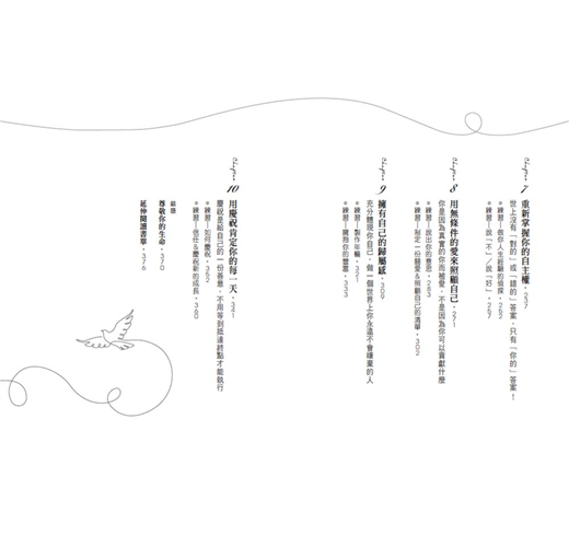 這是一本關於自我照顧的工具書,也是一本「找回自己」的聖經。當你活得又累又痛苦的時候,翻開每一章的祝禱、承諾與提問,輕輕朗讀或默念,那些充滿力量與祝福的文字,都將幫助你找回疲憊底下的真實自我!