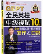 有鑑於寫作與口說常是讀者最害怕的測驗類型,我們集結中外編輯群,經多次研擬並網羅各類新鮮題材或時事,終於完成這本全新編寫、仿真度極高的《準!GEPT 全民英檢中級複試10回全真模擬試題 + 翻譯解答》,希望藉由反覆練習培養讀者作答能力與經驗,真正上戰場時能夠從容不迫、輕鬆應戰。