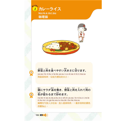 1.選出二十一道日本人最愛的料理,跟著日本媽媽的私房食譜,自己就能在家動手做做看!一邊學日文,一邊做出有「媽媽味道」的日本家庭美食吧!