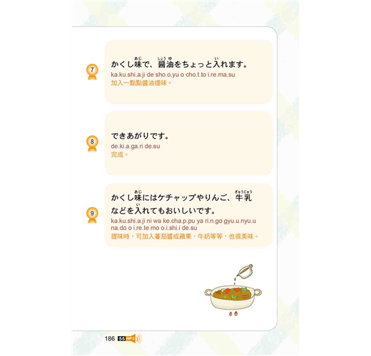 2.跟著日本媽媽按照食譜裡1、2、3……的編排順序,一步一步就能做出常見的日本美食!