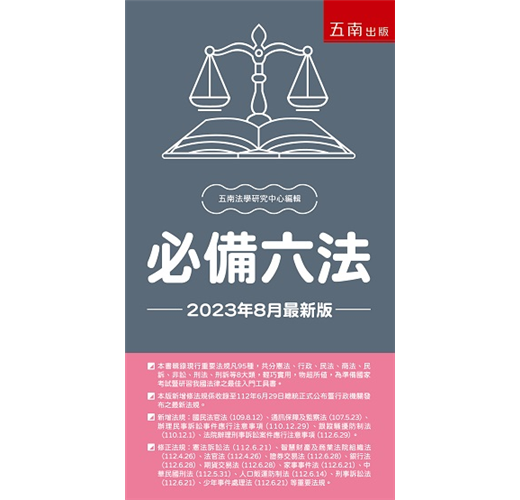 ▨ 本書輯錄現行重要法規凡95種,共分憲法、行政、民法、商法、民訴、非訟、刑法、刑訴等8大類,輕巧實用,物超所值,為準備國家考試暨研習我國法律之最佳入門工具書。