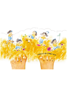 在外面全身玩得髒兮兮的小女孩,一回家就倒在客廳沙發上休息,一點也不想去洗澡。原本好言相勸的媽媽,聲音也開始大了起來,唸起饒舌般的洗澡提醒事項。小女孩原想隨意沖沖澡就結束,但身體卻開始說起話來:「好癢好癢、好癢好癢。」首先是被泡在咖哩裡的頭髮說話,接著是殘留著便便的屁股,還有被沙子卡住腳縫的腳趾……這些地方洗完,應該就乾淨了……吧?