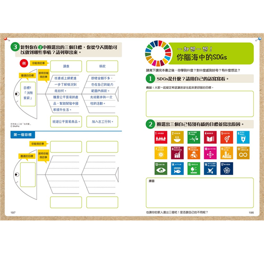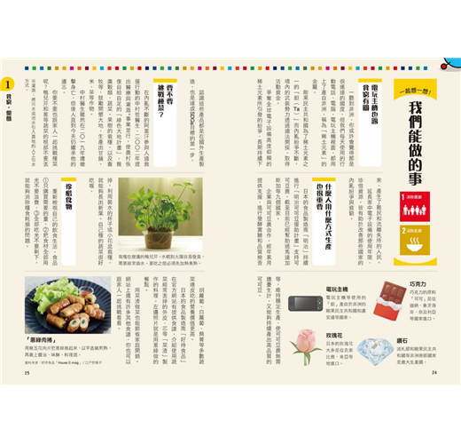 先進入漫畫劇情,接著透過簡易圖表或介紹認識SDGs的各項指標與內涵,最後就是「我們能做的事」,一環扣一環的無縫接軌,帶著我們認真、仔細卻輕鬆的全面認識SDGs。