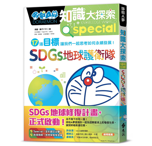 當SDGs成為全球人民核心目標時,欣見擁有廣大粉絲的【哆啦A夢知識大探索】將SDGs作為主題,以全彩圖文版從議題介紹到我們應該怎麼做,旁徵博引、鉅細靡遺,除了引導大小讀者透過哆啦A夢認識SDGs,更期盼大家透過自身的努力,對這個世界盡一份心力。