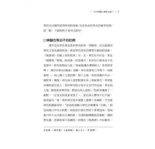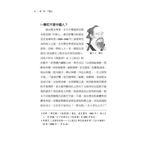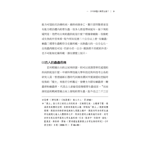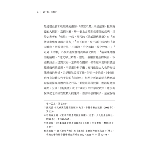 本書內還有一些文章,曾發表在《旅讀》雜誌「老皮說史」的專欄上,有一年左右的時間,每個月都要交一篇稿子,那種被時間追趕的壓力,至今仍記憶猶新,這些文章在收入本書前,多少進行了補充和修正。感謝那時總編輯張芸每個月底的鞭策,才能讓我擠出這麼多的創意,讓我這個學院派的「老學究」,也過過「專欄作家」的乾癮。最後,要感謝三民書局編輯群們的細心校對及修飾,讓書稿更加完整;毛硯平、湯欽安兩位助理,為我蒐集資料與整理書目,於此也一併致上謝意。國科會計畫〈當中醫遇上世界醫學――民國時期中西醫學史論著內的「近代」書寫〉的敦促,讓我能深入思考醫學史的寫作模式,這本書的誕生,將醫史研究推向另一種可能,也要歸功於這項計畫的支持。感謝太太和孩子整日見我呆坐於桌前寫稿,盡量不打擾我,並打理好一切家務,讓我感到日常寫作是一件幸福快樂的事情。本書若有任何疏漏之處,皆為筆者疏失,還請各位讀者、先進不吝指正。我的第一本書就是在三民書局出的,十幾年前,好像也是原班人馬在處理書稿,今年也已再版。在歲月的河流中拾取碎金,一路走來,謝謝這些編輯們在出版的路上持續支持筆者。最後,致敬愛書的讀者,終是開卷有益,讓我們展開一場中國醫療史的思想旅程吧。