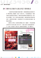 Ch07的電子書設計是在前面6章都學會的前提下,具有正確的基礎知識與設計流程後,才適合閱讀學習的章節,同時也是目前出版界最流行的話題,你可以得到最有價值的資訊內容。