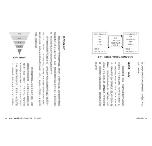 框架四:決策。消費者決策不只有傳統的直線型、複合型,依據心理學和經濟學研究發現,更多時候消費者是以無意識的「直覺」做出購物決定。