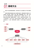 依情境分類,重點式整理各實用短句,讓你表達無障礙。接著附上與短句主題相關的2個情境會話,在會話中不時會用色塊解說單字或文法說明,也有文化連結專欄。在看完了會話與解說內容後,接著邊聽邊朗讀,對聽力與口說訓練會有很大的幫助。