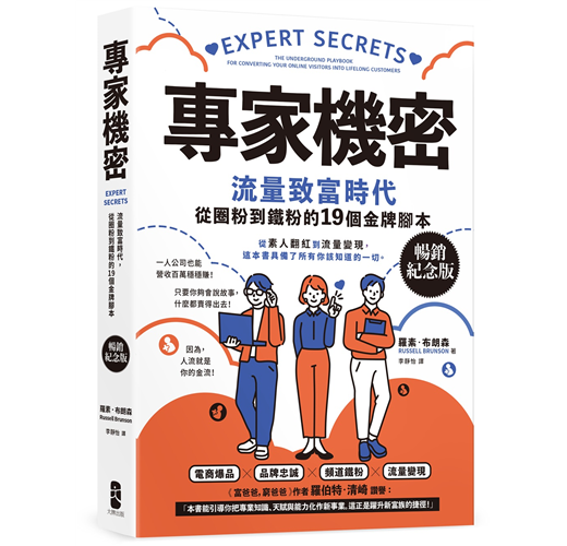 多數人只會賣產品,卻不了解他們的專業才是銷售的關鍵要點。你的故事,也就是你如何提供自己的服務與品牌運動的起點,這才是說服別人、並讓他們永遠留在你身邊的第一步。本書將完整揭密讓行銷素人徹底掌握把網站訪客變成終生顧客的藝術與方法。你不僅會學到如何把人引導到自己的漏斗,讓人流變金流,還會掌握到如何成為一位好的專家、優秀的領導者,創造出具有強大動能的獲利循環事業。