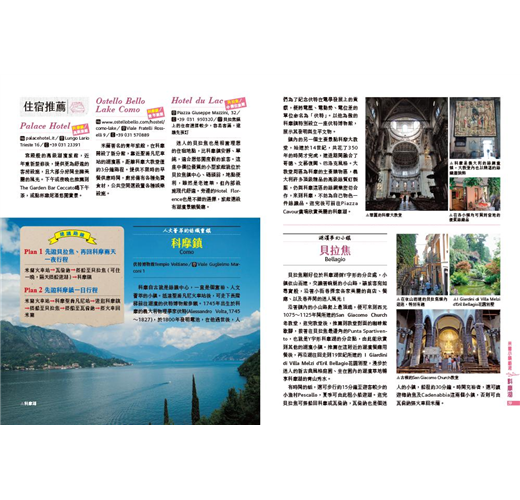 ◎悠然三大湖區:到當地熱門的旅遊地點──科摩湖區、大湖區、奧爾他湖區,依作者安排的環湖小鎮路線,除了放鬆度假外,也可來個大湖區小跳島旅程,並能帶走滿滿伴手禮回府。沉澱的朝聖旅行;想要品味更具義大利中古世紀風情可暢遊周邊聖吉米尼亞諾、西耶納、蒙特普齊亞諾等小鎮。