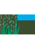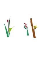 《有蚱蜢跳》是一本讓你重新張開眼睛,刷洗腦袋視覺皮層,找回「看」圖能力的特別作品。深綠色裱荷蘭布封面上是簡潔深色的花形(抑或張開雙手的人形?),布面延續至內面,緊接著裸背精裝書體,再連接至一片鮮黃地上的綠草原。接著鏡頭從扉頁開始運轉,旅程開啟,時而推近特寫,時而拉開,作為主人公的「蚱蜢」有時隱身在圖畫細部(請務必睜大眼找找),有時巨大溢出跨頁。