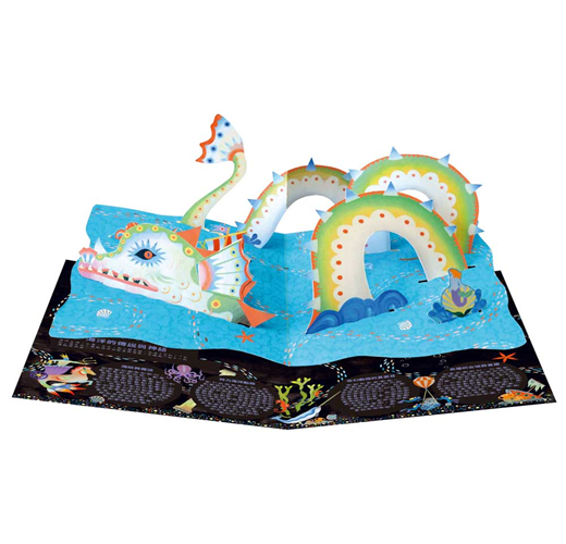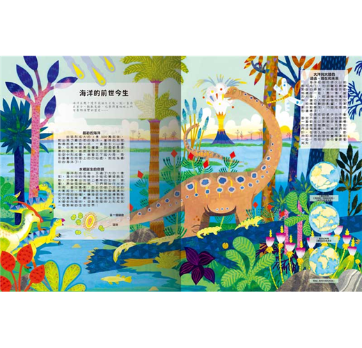 本書插圖採用大量的色塊、圖騰、線條手法,呈現出海洋的豐富之美。另外,手工打造的五張紙藝立體頁更是精彩絕倫,不但用多層次的立體頁呈現美麗珊瑚礁,還有神祕的大海怪也躍然紙上。整本書美得就像是藝術品一樣,繪圖絕美、風格獨特,值得好好收藏。