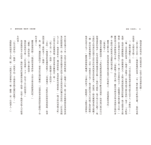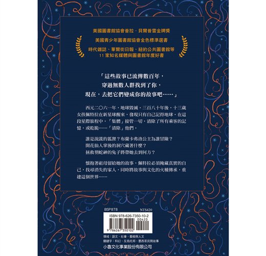 如果《記憶傳承人》曾讓你思考「同化」社區存在的意義,自由選擇的珍貴,那這本《最後一位說書人》,更能引發你審視一致性「集體」它的真偽和傳統文化與歷史記憶的價值。十三歲的佩特拉從小聆聽著祖母麗塔口述墨西哥民間傳說故事,這一個個動人的故事,一道道因故事產生的信念,是否能支撐佩特拉面對末日世代的來臨,面對前往未知星球的恐懼,還有「集體」去記憶化、去人性化的脅迫?在這本青少年科幻小說中,你看到的不是炫人的科技與進化,而是遠離地球與人類文化中的掙扎與不捨。