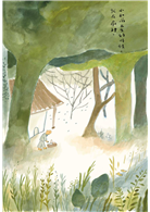 繪本《雨》以詩、書入畫,意境悠遠,反映出人們嚮往的禪修就發生在日常的用心和腳踏實地的實踐中。淡雅暈染的色彩與抒情的寫意風格讓孩子們感受到小和尚純淨善良的心靈,以及一生懸命的精神和信念。
