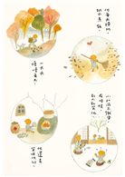 大約畫到三分之二時我有點卡住了,完成的圖像風格不太統一,幾張是彩色墨水,有些是留白加鉛筆線條,也有壓克力濃彩,有的偏寫實一點,還有畫得童趣可愛的。