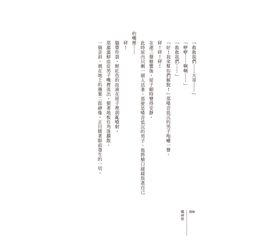 「窩在房間角落喃喃自語呢。」蹲在地上蒐證的彥辰抬起頭。