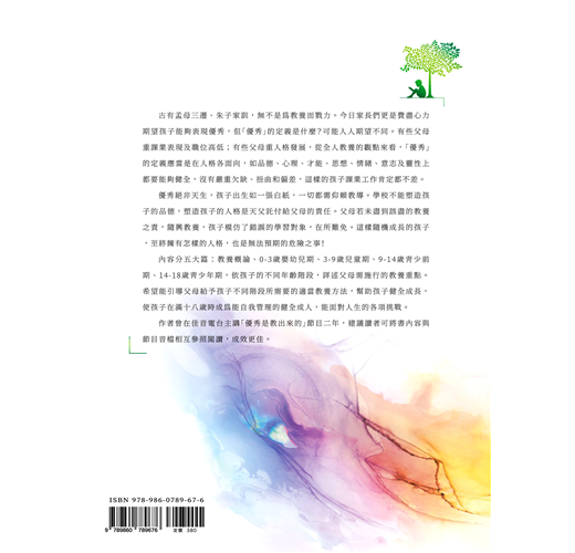 作者曾在佳音電台主講「優秀是教出來的」節目二年,讀者可將書内容與節目音檔相互參照閱讀,成效更佳。