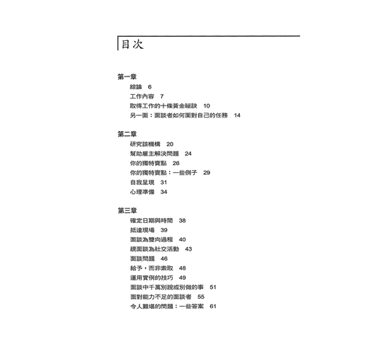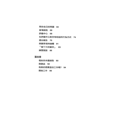 至於真正面談的時刻――從個人報告到提出問題――以及當你爭取到工作時該做些什麼,也都在本書的檢視範圍。