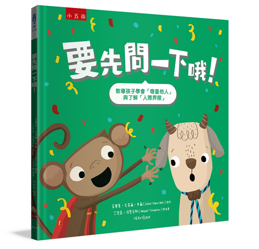 這是一本藉由一隻猴子與朋友間進行搔癢遊戲的故事,告訴3到6歲的孩子什麼是「先取得他人同意」的書。包括家長和老師,都可藉由這本書讓孩子提早了解什麼是「先取得他人同意」,進而讓孩子學習尊重自己與尊重他人也有說「不」的權利。