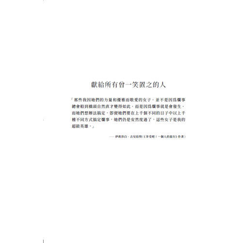 ■ 「妮兒的中年幸福之旅是搞笑的、感人的,並充滿了對任何年齡段的女性意味著什麼的清醒智慧,證明了當你愛上生活時,最好的幸福生活才會到來。」──露西.迪隆(Lucy Dillon)