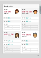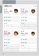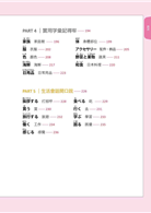 9大主題分類單字,包括「家庭樹」、「身體部位」、「衣服」、「配件、飾品」、「顏色」、「蔬果」、「海鮮類」、「日本美食」、「日常用品」,同樣搭配聽、說、讀、寫四步驟,讓您充分複習假名與發音的同時,也學習到更多單字!
