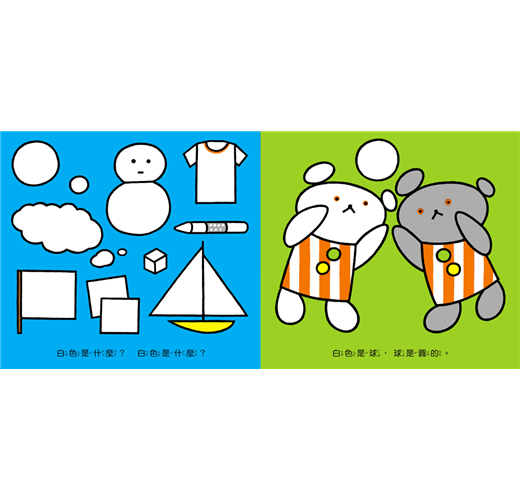 這是有趣的文字聯想力遊戲,幫助孩子們認識不同的顏色和形狀。例如:「四角形是豆腐,豆腐是白色。」引導孩子們思考「白色的東西還有什麼?」以此類推,並用重複性詞語,加深印象去延伸思考,更可幫助開發未知的想像力,在本書中運用了孩子所熟悉的語言、文字、圖像等表達方式,引導其走入活潑豐富的想像世界。