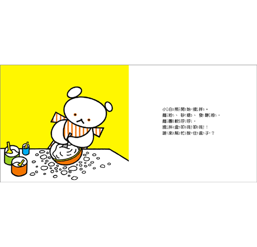 剛開始創作這本《小白熊做鬆餅》時,我就已經在想像孩子們打開書本時滿心歡喜的心情了。