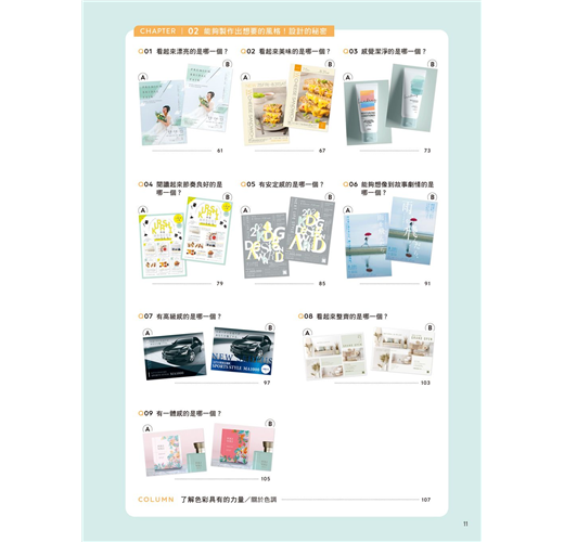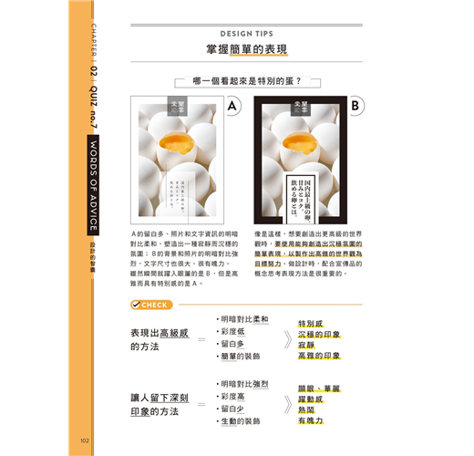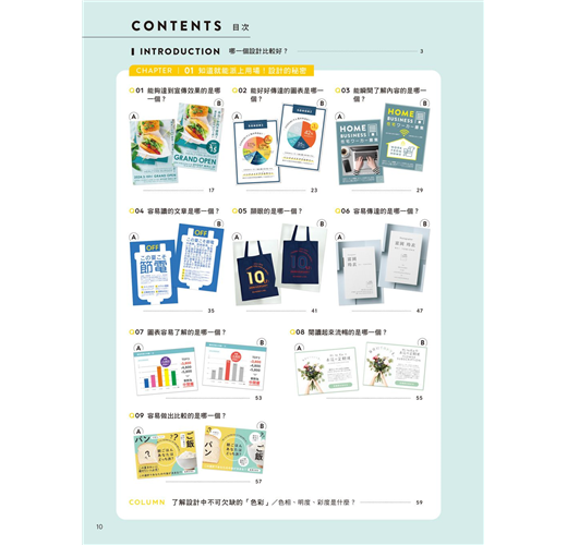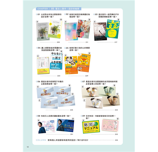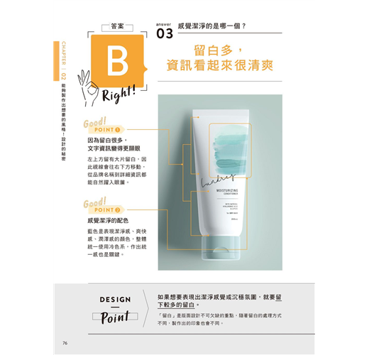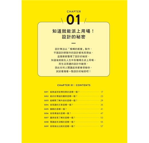 只是擁有簡單的知識,就可以大幅改變設計的成果,沒有知識卻只是以模糊的感覺做設計是很可惜的事情。要如何將普通的設計修改成好的設計是有「秘密」的,這個秘密毫不保留地分散在本書的47個問答測驗中。