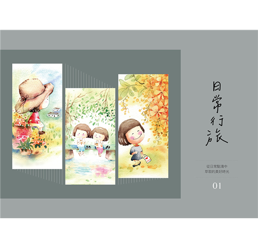 先跟著艾咪老蘇筆下的人物、花草,練習打線稿、調色、暈染,再逐步記錄自己的日常。