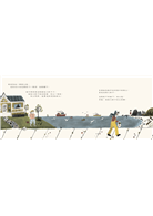 在這樣的閱讀節奏之後,故事的尾聲則是以四個跨頁呈現,最後一個驚喜是個大驚喜,以雙倍於之前的篇幅來慢慢說,有曲終漸緩的餘韻。藍色小椅子的漂浪之旅不僅限於陸地,還曾橫渡海航、飛越天際,它一度變成紅色小椅子,至此,又再回到原本的模樣,而且,這次的相遇,其實是久別重逢,是千山萬水之後的重逢。