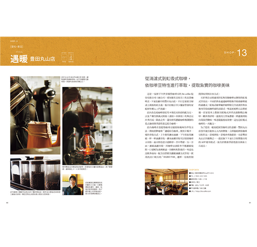 透過本書了解各店家對於器具挑選和萃取的見解,以及各店家使用的萃取技術。希望大家能從各店家的堅持中獲得啟發與學習新知,從中探索出最適合自己且專屬於自己的萃取方式。