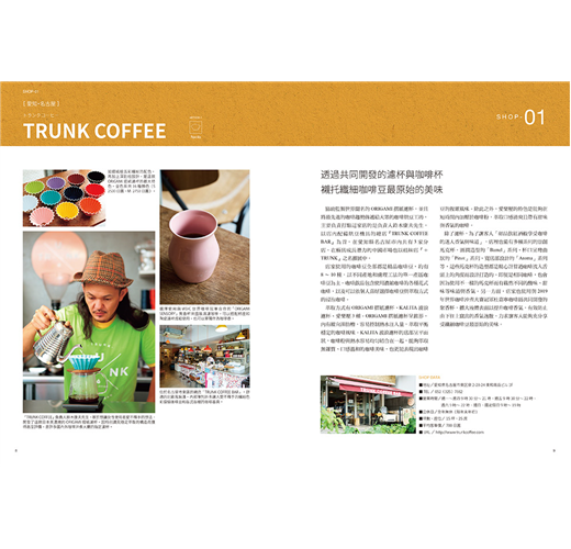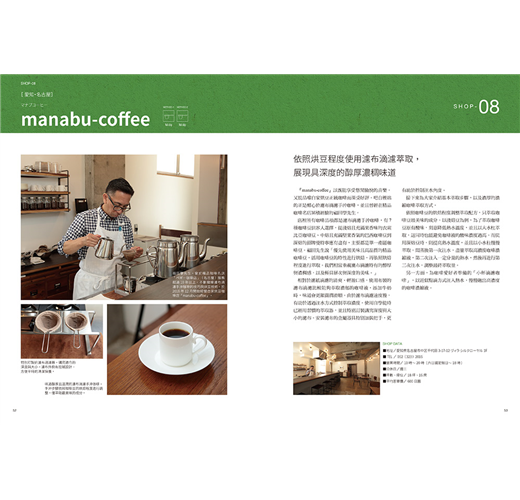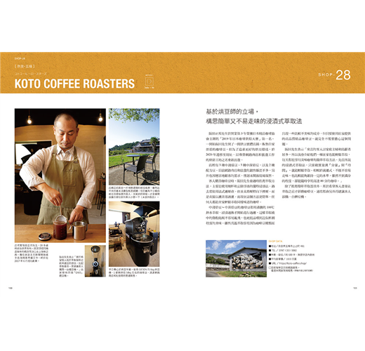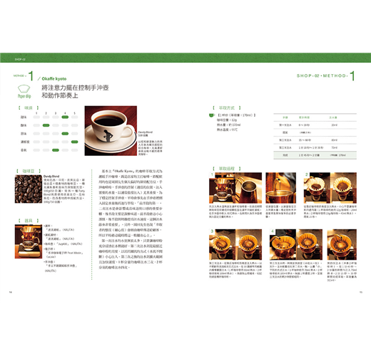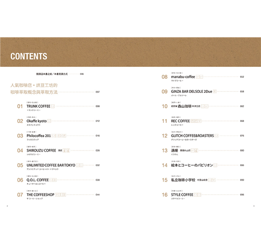 (3)本書架構:針對收錄的每一家咖啡店,首先介紹店家基本資料、對於咖啡萃取的觀念,接著介紹店家使用的咖啡萃取方式。若各店家有獨自的使用術語,本書也會配合使用專用術語。