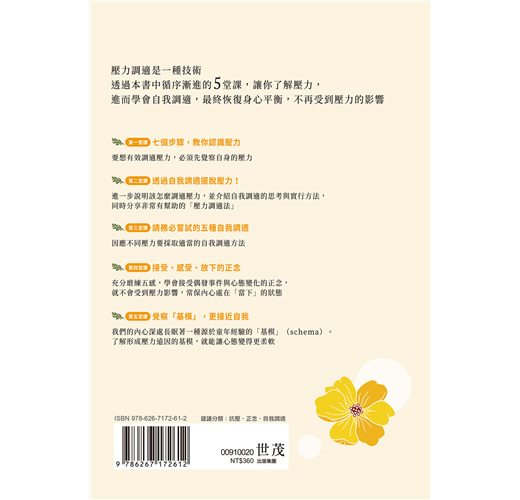 透過本書中循序漸進的五堂課,讓你了解壓力,進而學會自我調適,最終恢復身心平衡,不再受到壓力的影響