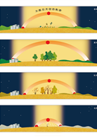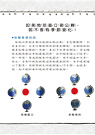 「問我就對了!我可是聰明的狐狸多藍。如果地球直立著繞太陽公轉,各地區受到太陽照射的角度不會變化,那麼不管地球公轉到黃道面的哪一個位置,地球上每個地區被陽光照射的時間長度和所接收到的熱量,就會固定不變。這麼一來,每一個白天和夜晚的時間長度就會始終一樣,也沒有季節變化。但實際上,地軸是傾斜的,所以隨著地球公轉到不同位置,同一地區被陽光照射到的時間長度和接受的熱量會發生變化,隨之而來,日與夜的長度也就會有變化,春夏秋冬四季就出現了!」小狐狸多藍說。