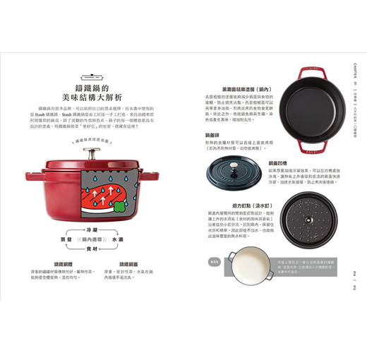 書中收錄「使用鑄鐵鍋」需要知道的各種知識,從買鍋前的尺寸、鍋型考量,日常的使用與清洗,烹調更順手的技巧到美味加分的密技,一本書解決料理過程的所有疑惑。