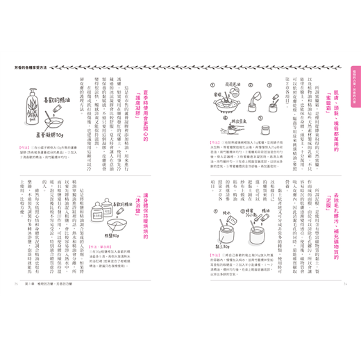 3. 我喜歡芳療和手作,藉由這本書自製了去除毛孔髒污的泥膜。我嘗試泡澡時使用後,也覺得黑頭粉刺變得比較不明顯,讓我想繼續使用看看效果如何。這本書的許多配方都是能輕鬆製作的,也很推薦給初學者。