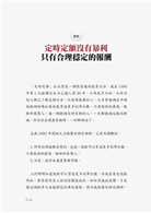 人生的境遇誰也說不準,小時候我的作文並不好,沒想到我竟然可以出書。我現在懂了,寫書不用作文好,學生時代老師喜歡的作文是要有成語、要運用古人的詩詞……這些我都不會,所以分數都很低。但是寫書是要讓讀者看得懂,所以文言文、古詞就不必了。小時候不活潑,有點膽怯,沒想到現在竟常拿麥克風面對好幾百人,甚或上千人演講,口才也不知何時訓練的,總能上台就滔滔不絕。這些都不是因為我念了什麼了不起的學校,或者從小學了什麼才藝而來的,只有一個不變的原則——「負責、盡心、努力」!
