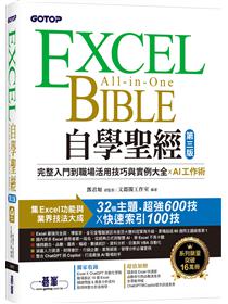 本書整理大數據、人資、行政、總務、業務、會計、生管、財務、企宣、公務員、市場調查、銷售管理、產品研發…等商務應用、資料分析的重要函數。為了方便每一位讀者操作學習,所有實例都附有原始的範例檔案,並提供執行結果檔案。