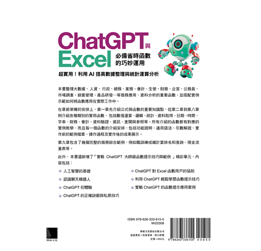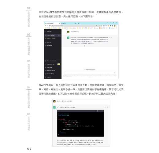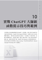 此外,本書還新增了「實戰ChatGPT大師級函數提示技巧與範例」精彩單元,內容包括: