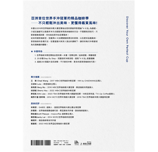 學習咖啡沖煮的讀者們,對於粕谷哲先生的「4:6法」沖煮概念一定不陌生。2016年粕谷哲先生得到世界盃沖煮大賽冠軍,那時的我才剛踏入咖啡產業,對於沖煮咖啡有著「十萬個為什麼」。相信學習咖啡沖煮的過程,大家都經歷過以下這些問題:參數都一樣但味道怎麼都不一樣?怎麼沖才會比較甜?怎麼沖能降低苦感? 當年「4:6法」發表時,大大地解惑了我的疑問,可以明顯感受到「我的咖啡變好喝了!」這使我對於不同的沖煮段落萃取如何影響咖啡的整體結構,以及如何調整沖煮策略有了更完整的架構。本書詳細拆解每個步驟,剖析分段萃取影響咖啡風味的前因後果,所提及的細節都是每位咖啡初學者不易察覺卻又不可忽略的過程,搭配圖表解說更加淺顯易懂,即使你是第一次沖煮咖啡,按照步驟操作也能輕易上手,真是新手的福音呀!