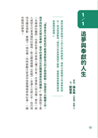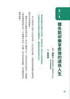 本書除了邀請專家學者們提供對退休歷程的相關建議之外,還訪問了我們熟悉的公眾人物及一般民眾。他們分享了自己的退休經歷和心境,包括了繼續在不同場域服務、自行創業。抱持著活到老學到老的精神、他們積極上課、學著自助旅行、將運動做為生活與社交重心……。