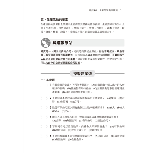 相同類型的題目一錯再錯嗎?這本書針對比較容易混淆的觀念,特別挑出來再予以釐清;並補充課外資料,就算考試考出延伸類型的題目,你也能獲取高分