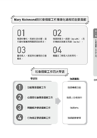 緊接著,1922 年Richmond 出版了《何謂社會個案工作》(What is Social Casework?)一書。相較於《社會診斷》,《何謂社會個案工作》對於社會個案工作的論述更具有體系化,且理論之論述更加完整。此著作除有系統的說明個人的人格發展如何受到社會環境的影響,亦說明社會個案工作的原則、方法與步驟。Richmond 提出社會個案工作的三個步驟, 包括調查(investigation)、診斷(diagnosis)與處遇(treatment)。