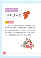 而除了「引導式作文」的題目及說明外,我們在每一堂課中,針對家長如何引導孩子寫作,以及瞭解這個階段孩子的寫作狀況,我們設計了〈觀念交流〉、〈親子討論〉、〈看看別人怎麼寫〉這些大單元。