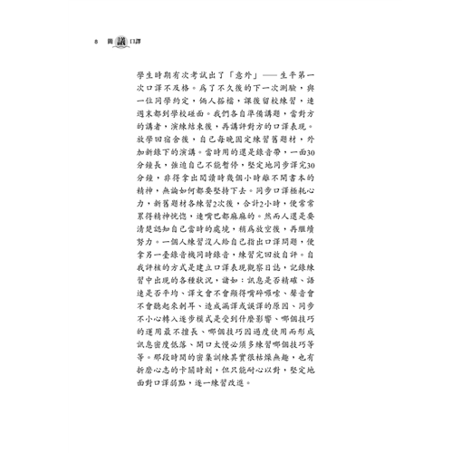 學習口譯的迷人與懾人之處,走過一遭,便知其中苦樂。多少人帶著加強外語的心態學習口譯,到頭來卻發現外語好只是口譯基本條件,而原以為輕而易舉的口「譯」,卻常常莫名成了胡言亂語的口「臆」。