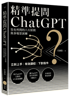 本書是ChatGPT的最佳指南,透過實用的技巧,指引如何提高問題的準確度,以及如何組織問題和語言來與ChatGPT進行有效的交流,提供各種問題的解決方案,提高我們的生產效率、節省寶貴時間。現在就跟上時代發展的腳步,保持探索慾和好奇心,持續充實自己,以應對未來的挑戰,為自己創造新機遇。